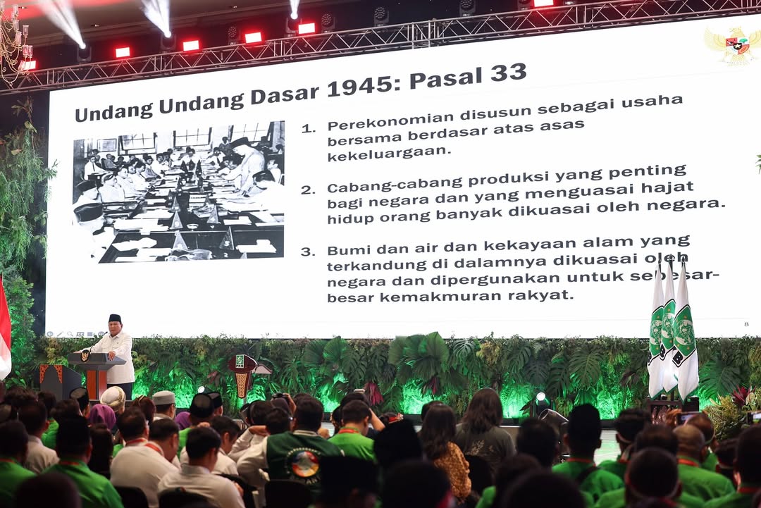 PENAMAS.ID, JAKARTA – Hadiri Harlah PKB, Presiden Prabowo Subianto menerangkan terkesan dengan pidato mantan Wakil Presiden sekaligus Ketua Dewan Syuro PKB KH. Ma’ruf Amin. Pasalnya, Ma’ruf menyenggol pasal 33 Undang-undang Dasar (UUD) saat sambutan di Harlah PKB di JCC Senayan, Jakarta, Rabu, (22/7) kemarin.